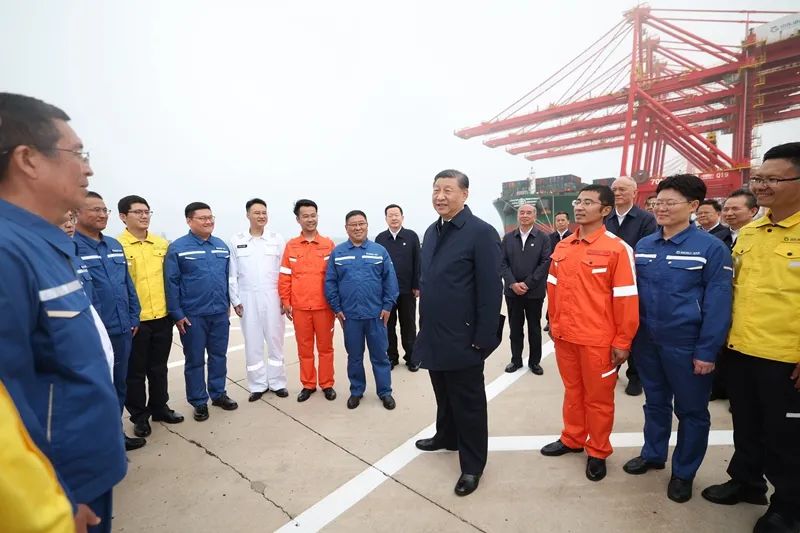 5月22日至24日,中共中央總書記、國(guó)家主席、中央軍委主席習(xí)近平在山東考察。這是22日下午,習(xí)近平在日照港親切慰問港口科技工作者、運(yùn)營(yíng)人員、航運(yùn)人員。