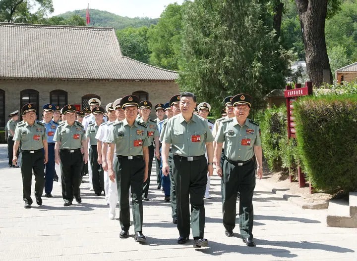6月17日至19日,中央軍委政治工作會議在陜西延安召開。中共中央總書記、國家主席、中央軍委主席習(xí)近平出席會議并發(fā)表重要講話。這是17日下午,習(xí)近平帶領(lǐng)軍委一班人和各部門各單位主要負(fù)責(zé)同志瞻仰王家坪革命舊址。新華社記者 李剛 攝