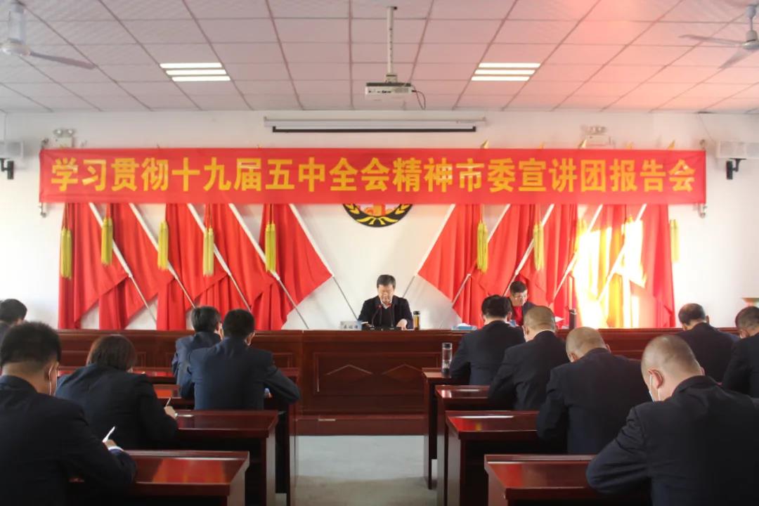 12月4日,學(xué)習(xí)貫徹十九屆五中全會(huì)市委宣講團(tuán)報(bào)告會(huì)在山西大正保安服務(wù)有限公司進(jìn)行。市委宣講團(tuán)成員、市工信局(國資委)黨委書記、局長吳瑞峰作宣講報(bào)告。公司黨委書記、董事長張躍生主持報(bào)告會(huì)。黨委副書記、總經(jīng)理趙培宏等在家領(lǐng)導(dǎo)班子成員及中層副職以上干部50余人參加。吳瑞峰同志從深刻認(rèn)識(shí)我國進(jìn)入新發(fā)展階段的重大意義、有利條件和重要特征以及準(zhǔn)確把握2035年遠(yuǎn)景目標(biāo)和“十四五”時(shí)期我國發(fā)展的指導(dǎo)方針、主要目標(biāo)、重點(diǎn)任務(wù)等五個(gè)方面內(nèi)容,結(jié)合當(dāng)前形勢及國資國企改革發(fā)展實(shí)際,對(duì)黨的十九屆五中全會(huì)精神進(jìn)行了深入淺出、全面細(xì)致的宣講。