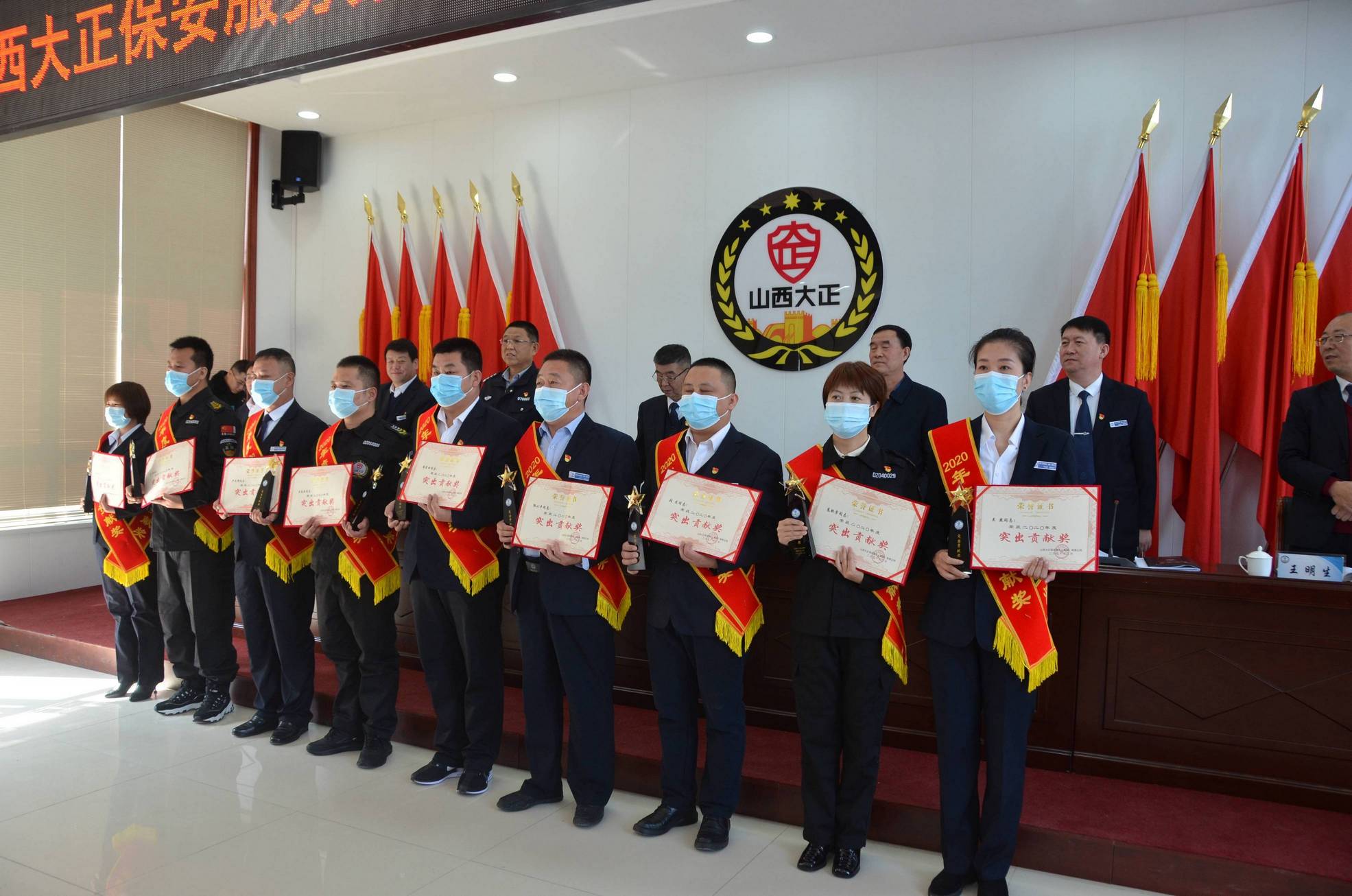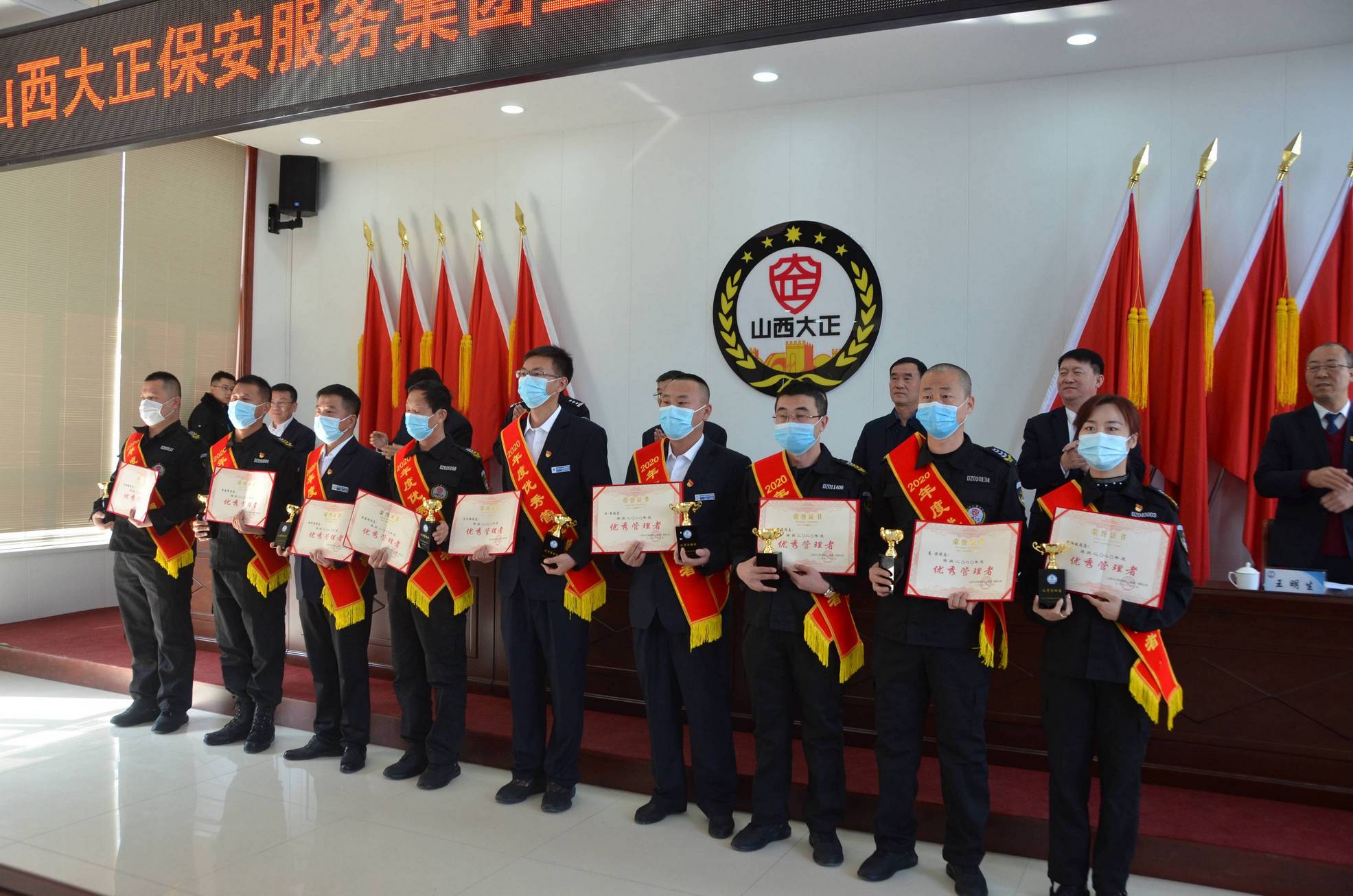 3月1日,山西大正保安服務(wù)集團(tuán)有限公司召開(kāi)2020年度總結(jié)表彰大會(huì)。市工信局(國(guó)資委)黨委委員、二級(jí)調(diào)研員劉建文,市公安局黨委委員、副局長(zhǎng)馬新文出席會(huì)議。公司中層副職以上干部及受表彰的先進(jìn)集體、先進(jìn)個(gè)人代表共計(jì)120余人參加會(huì)議。