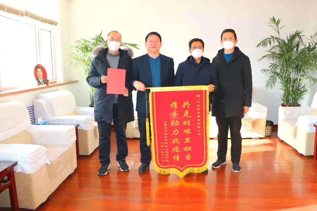 1月9日上午,忻府區(qū)法院黨組成員、副院長(zhǎng)黃偉,黨組成員、政治部主任焦旭林帶著寫(xiě)有“共克時(shí)艱顯擔(dān)當(dāng) 攜手助力戰(zhàn)疫情”的錦旗和一封感謝信來(lái)到了山西大正保安服務(wù)集團(tuán)有限公司,表達(dá)對(duì)保安公司在疫情防控中無(wú)私無(wú)畏、甘愿付出的誠(chéng)摯謝意。大正保安集團(tuán)公司黨委副書(shū)記、總經(jīng)理趙培宏、黨委委員、副總經(jīng)理王明生接洽。自2022年11月6日忻府區(qū)突發(fā)疫情以來(lái),山西大正保安服務(wù)集團(tuán)有限公司駐忻府區(qū)法院勤務(wù)點(diǎn)的隊(duì)員們?cè)陉悤詵|隊(duì)長(zhǎng)的帶領(lǐng)下,積極響應(yīng)疫情防控各項(xiàng)要求,除在保障法院關(guān)鍵時(shí)期平穩(wěn)運(yùn)行外,保安公司職員還能夠挺身而出,積極投身防疫點(diǎn)值守、后勤保障、車(chē)輛運(yùn)行、機(jī)關(guān)防疫消殺等方面,以實(shí)際行動(dòng)為忻府區(qū)法院疫情防控及機(jī)關(guān)安保工作做出了突出貢獻(xiàn)。越是緊要關(guān)頭,越能映照初心;越在關(guān)鍵時(shí)刻,越顯擔(dān)當(dāng)使命。面對(duì)突如其來(lái)的疫情“大考”,大正保安集團(tuán)積極響應(yīng)號(hào)召,主動(dòng)、迅速地配合我院防疫部署,精心服務(wù)群眾、嚴(yán)格執(zhí)行命令、防范意識(shí)到位,助力織密織牢疫情防控網(wǎng),充分展示了大正保安人的職業(yè)素養(yǎng)與責(zé)任擔(dān)當(dāng)。幾年來(lái),山西大正保安服務(wù)集團(tuán)有限公司駐區(qū)法院全體職員,以法院為家,服從工作需要,積極參與各項(xiàng)審判事業(yè),做到聞令而動(dòng),成為不可或缺的中堅(jiān)力量,為法院跨越式發(fā)展提供了巨大支持。