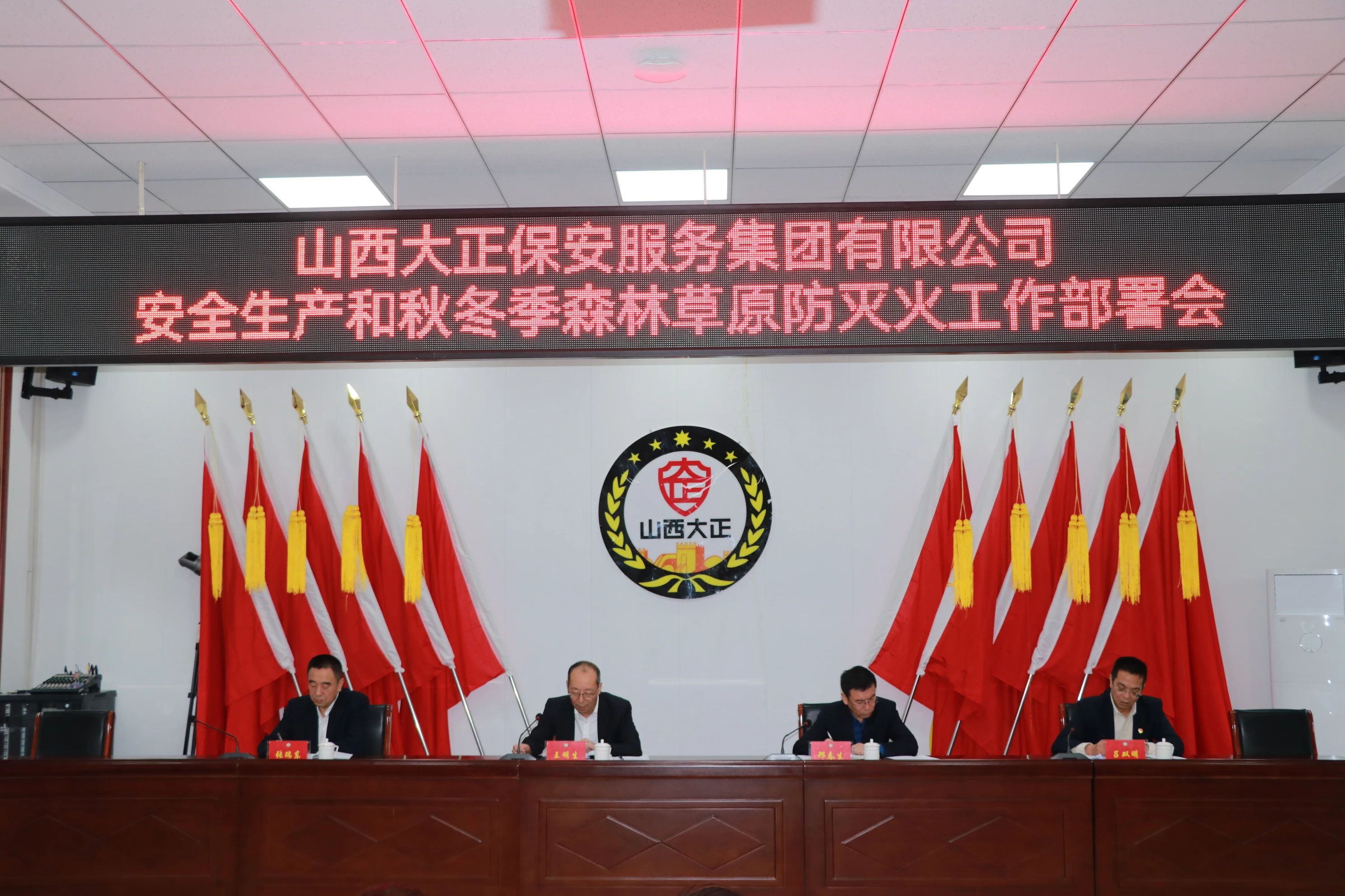 為深入貫徹省市兩級(jí)關(guān)于安全生產(chǎn)和秋冬季森林草原防滅火工作的重要指示精神,山西大正保安服務(wù)集團(tuán)有限公司于9月29日組織召開(kāi)了專(zhuān)題會(huì)議,全面?zhèn)鬟_(dá)學(xué)習(xí)相關(guān)視頻會(huì)議內(nèi)容,并緊密結(jié)合公司實(shí)際,對(duì)下一階段的安全生產(chǎn)及森林草原防滅火工作進(jìn)行了周密部署。因集團(tuán)公司黨委書(shū)記、董事長(zhǎng)、總經(jīng)理趙培宏外出參會(huì),會(huì)議由集團(tuán)公司黨委委員、副總經(jīng)理王明生代為主持,公司高層管理人員、各部門(mén)負(fù)責(zé)人及安全條線(xiàn)全體員工參加了此次會(huì)議。