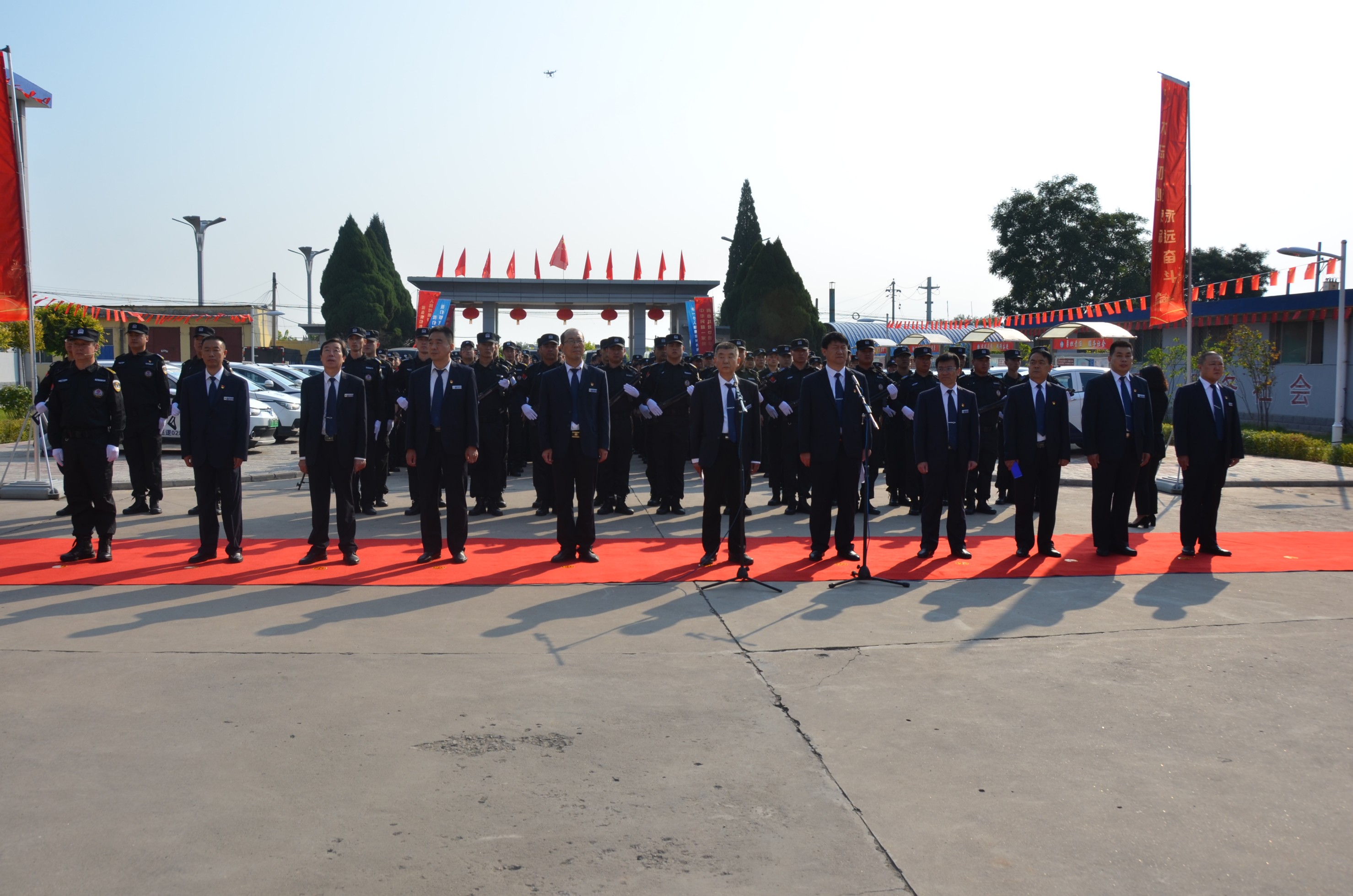 在中華人民共和國成立70周年即將來臨之際,為進(jìn)一步提高廣大干部職工的愛國意識,營造濃厚的愛國愛企氛圍,激發(fā)正能量、提升凝聚力。9月27日,山西大正保安服務(wù)有限公司在公司城南駐地隆重舉行莊嚴(yán)的升旗儀式。黨委書記、董事長張躍生作重要講話,公司黨委委員、副總經(jīng)理趙培宏主持升旗儀式。王明生、邢春生、張瑞東、呂雙明等公司領(lǐng)導(dǎo)、機(jī)關(guān)各單位及基層九個分公司的400余名干部職工參加儀式。