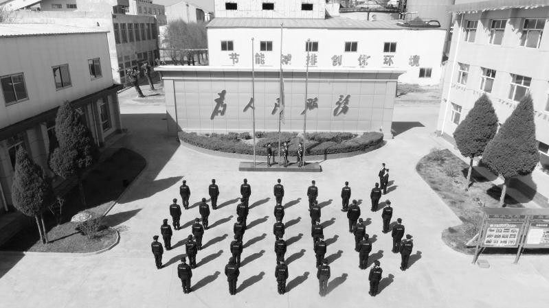 (公司在悼念活動(dòng)中,舉行升國旗儀式)