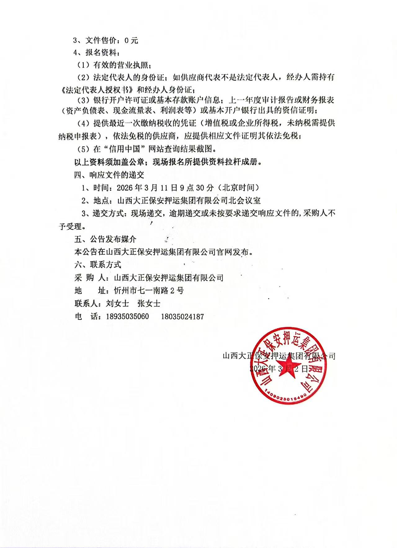 山西大正保安押運(yùn)集團(tuán)有限公司
