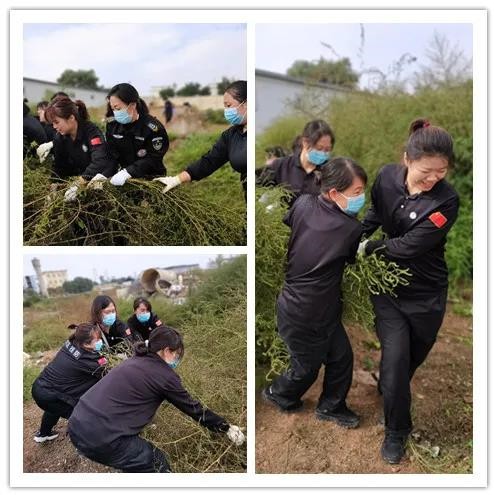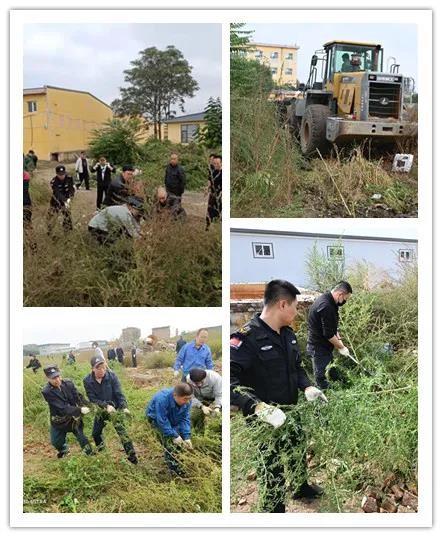 后勤部門的同志早已準(zhǔn)備好了鐮刀、鋤頭、鐵鍬,一大早,各部門組織員工按照劃分好的區(qū)域開始除草行動。剛進場地看見有的野草長的非常茂盛,高過女同志,一時還真找不著下手之處,很快大家便找到了對付辦法,刀砍鍬鏟手拔,還有的幾個人合力拔大的雜草,男同志揮汗如雨,女同志也不甘落后,鉚足了勁頭,還有基層趕來助戰(zhàn)的保安員幫助“后進隊伍”,勞動現(xiàn)場一片祥和景象。還有部分區(qū)域?qū)?ldquo;無主”狀態(tài),大家積極主動配合,合力圍剿,經(jīng)過全體職工的辛勤勞動,將近中午,大片大片的雜草被清理的干干凈凈。