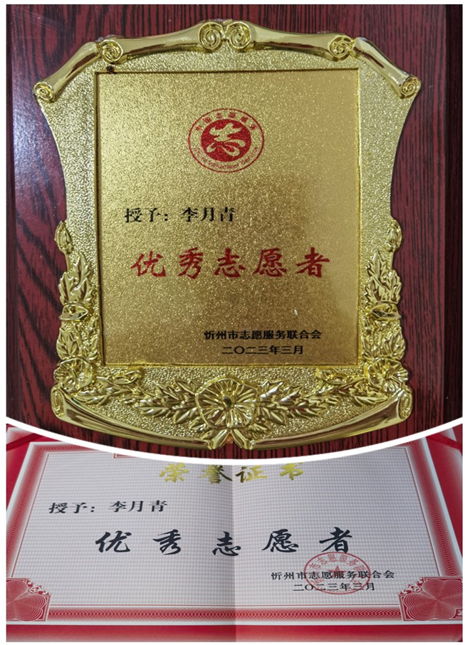 山西大正集團(tuán)公司李月青榮獲忻州市志愿服務(wù)聯(lián)合會2022年度“優(yōu)秀志愿者”榮譽(yù)稱號,并作為志愿者團(tuán)隊(duì)代表發(fā)言。