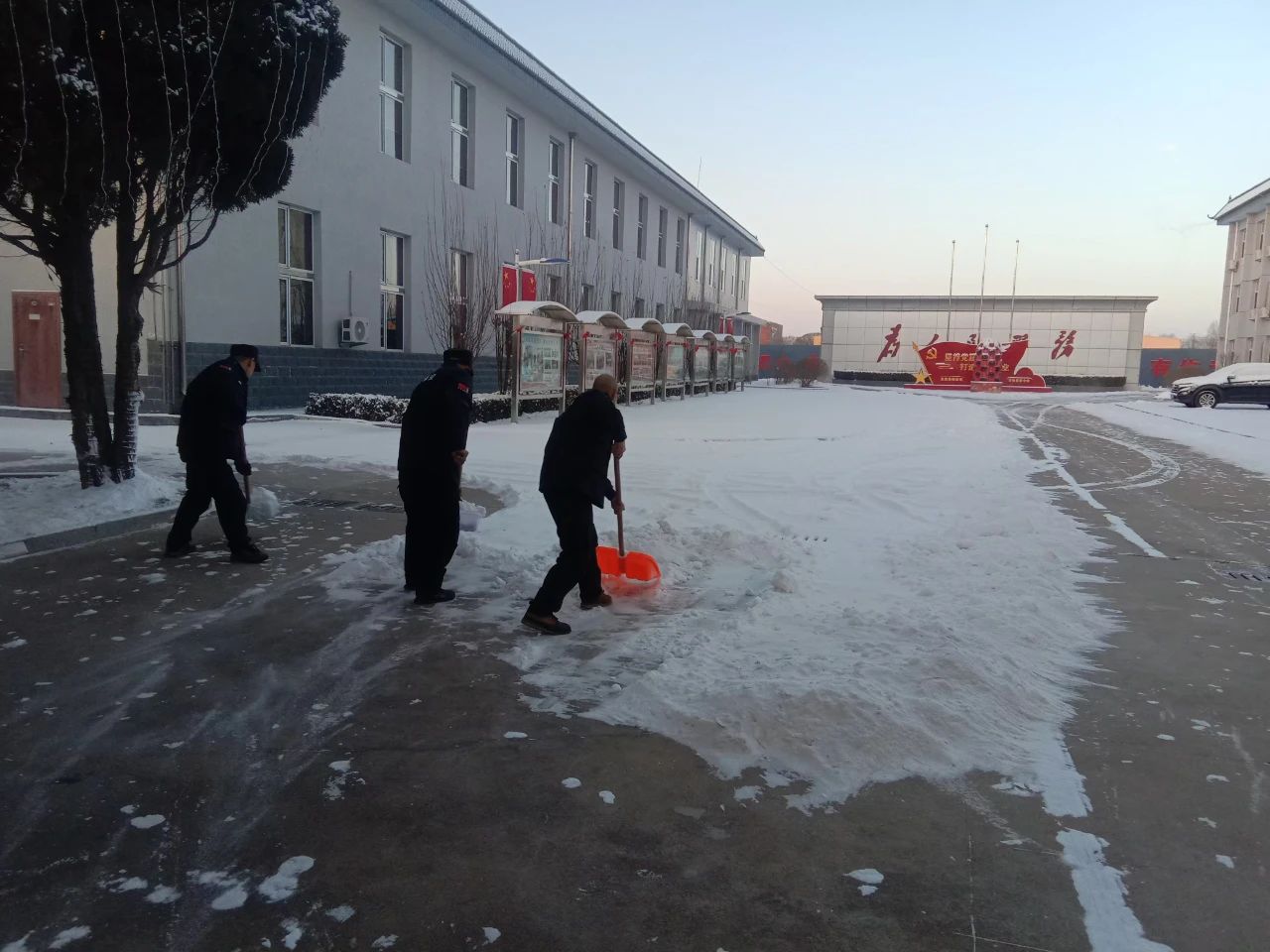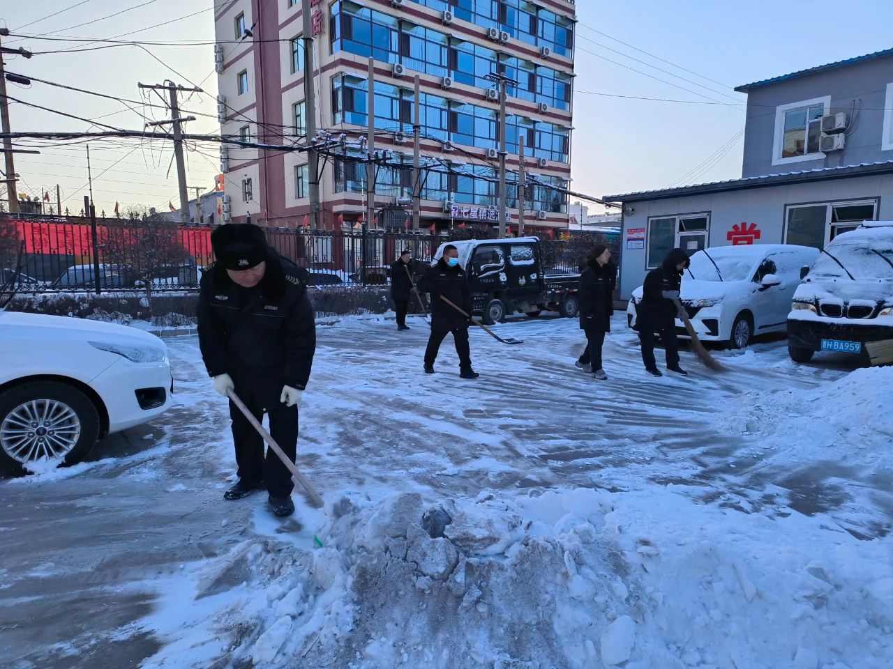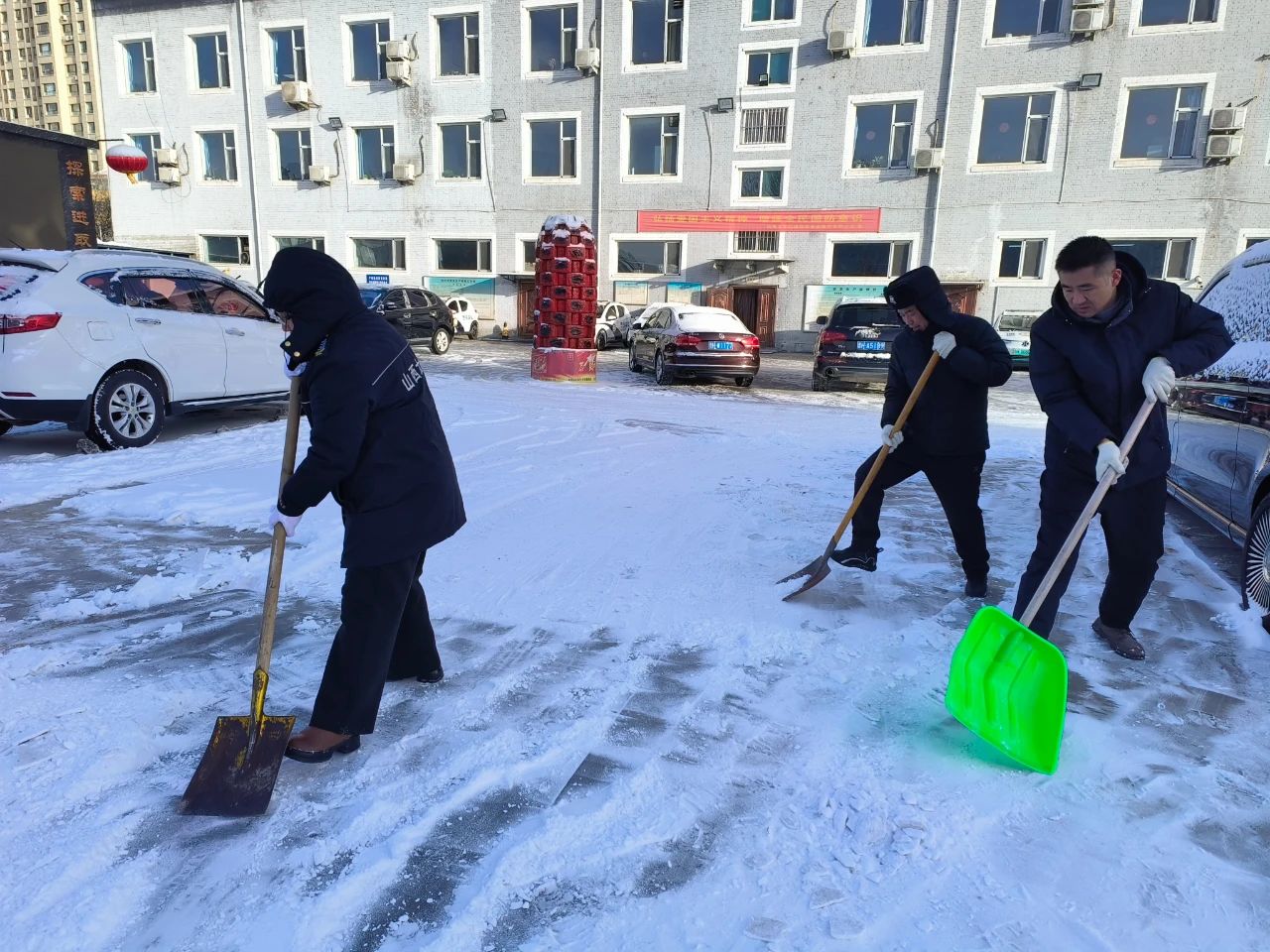清掃積雪的工作看似簡(jiǎn)單,卻充滿了挑戰(zhàn)。積雪已經(jīng)結(jié)成厚厚的冰層,路面濕滑,每一步都需要小心翼翼。盡管如此,保安隊(duì)伍從不畏懼嚴(yán)寒和困難,始終保持著高度的責(zé)任感,認(rèn)真負(fù)責(zé)地完成任務(wù)。無(wú)論是周邊的道路,還是進(jìn)出頻繁的停車場(chǎng),哪里有積雪,哪里就有我們忙碌的身影。在大家的努力下積雪很快被清理干凈,確保了每條道路暢通無(wú)阻,為客戶單位提供了一個(gè)安全、便捷的環(huán)境,為市民的安全出行保駕護(hù)航。