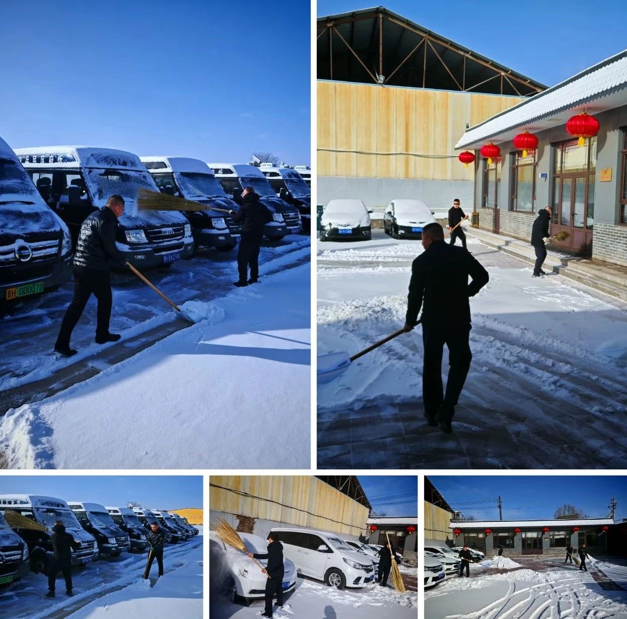 各駐勤點(diǎn)迅速啟動(dòng)了應(yīng)急預(yù)案。各保安隊(duì)長(zhǎng)第一時(shí)間與客戶單位取得聯(lián)系,了解具體需求,并迅速調(diào)配人力物力,展開掃雪除冰行動(dòng)。隊(duì)員們身著制服,手持鐵鍬、掃帚,不畏嚴(yán)寒,全力投入到掃雪工作中。他們分工明確,有的揮舞鐵鍬鏟除厚厚的積雪,有的則用掃帚清掃路面上的殘雪,確保周邊的道路暢通無(wú)阻。