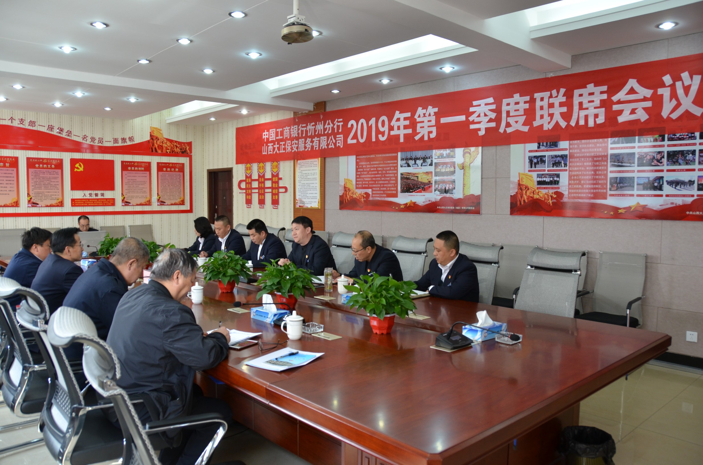 3月29日,公司與工行忻州分行召開2019年第一季度聯(lián)席會(huì)議。黨委委員、副總經(jīng)理趙培宏主持會(huì)議,工行忻州分行紀(jì)檢書記李榮杰,內(nèi)控安全保衛(wèi)部副經(jīng)理徐軍及公司黨委委員、副總經(jīng)理王明生,董事長(zhǎng)助理、守押公司副總經(jīng)理寇星云等公司領(lǐng)導(dǎo)參加會(huì)議。