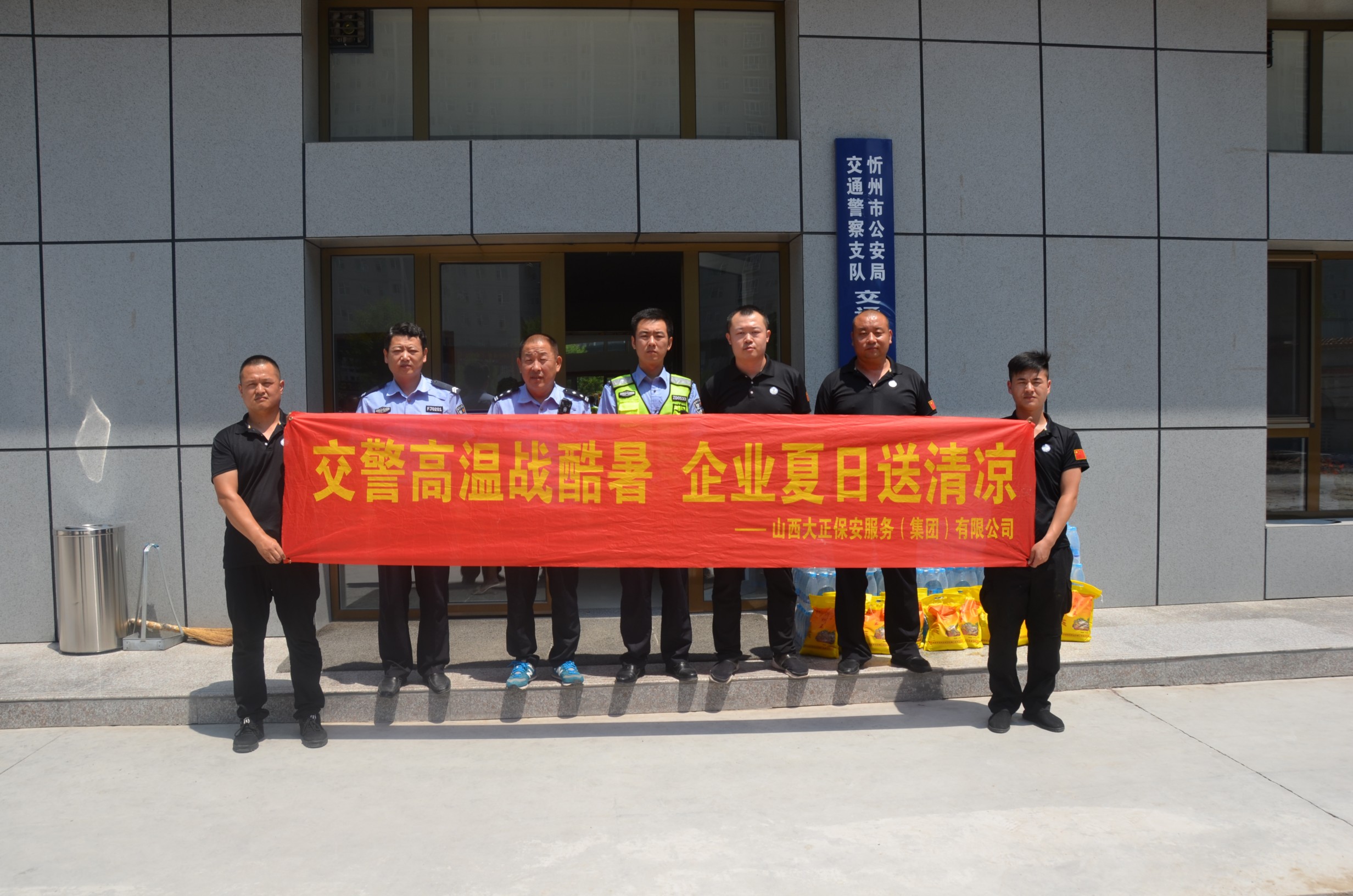 本次山西大正保安服務(wù)(集團(tuán))有限公司共計慰問34家基層交警,送去礦泉水1560件、小米340袋、綠豆340袋。