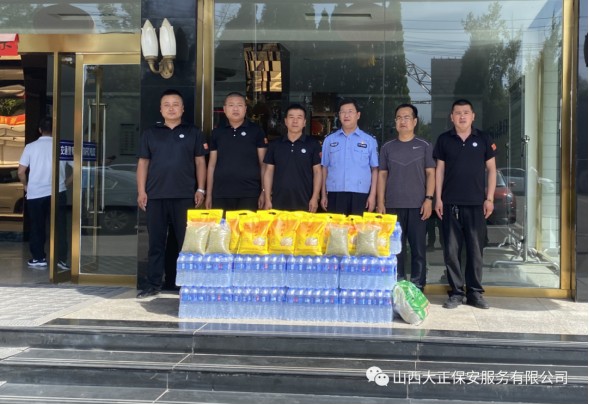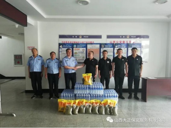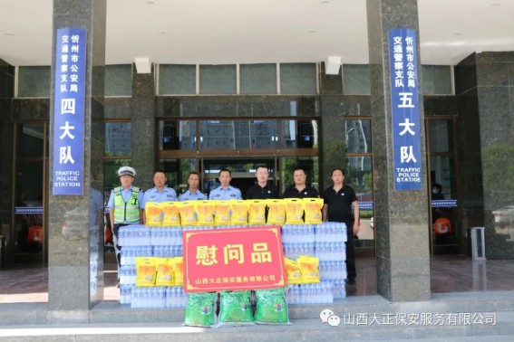 6月3日,山西大正保安服務(wù)(集團(tuán))有限公司河曲中隊(duì)代理中隊(duì)長(zhǎng)霍健,帶領(lǐng)中隊(duì)隊(duì)員代表公司慰問(wèn)了河曲縣公安局交通警察大隊(duì),為奮斗在交通指揮一線的縣交警大隊(duì)民警送去防暑降溫慰問(wèn)品。將關(guān)愛送到一線,把清涼送到一線,確保一線交通干警同志們度過(guò)一個(gè)安全、衛(wèi)生、清涼的夏季。感謝一線交警不畏烈日、日夜堅(jiān)守崗位,確保了城區(qū)干道交通暢通、人民出行安全,營(yíng)造了良好的道路交通環(huán)境。交警大隊(duì)副隊(duì)長(zhǎng)李強(qiáng)接受了慰問(wèn),并表示:“有了企業(yè)的關(guān)愛及社會(huì)各界的理解和支持,讓交警感受到了無(wú)盡的清涼。全體民輔警將繼續(xù)發(fā)揚(yáng)‘能吃苦、能戰(zhàn)斗、能奉獻(xiàn)’的優(yōu)良作風(fēng),以更加飽滿的工作熱情投入工作中,以實(shí)際行動(dòng)回報(bào)社會(huì)各界的關(guān)愛。”