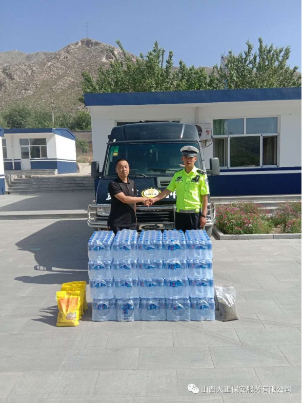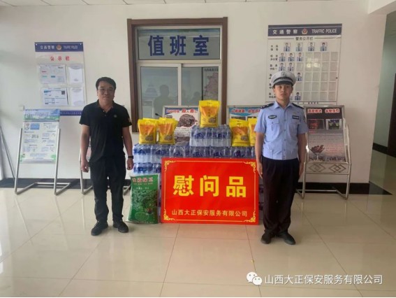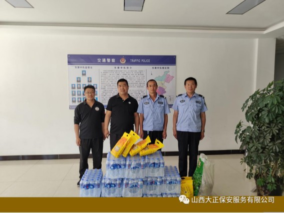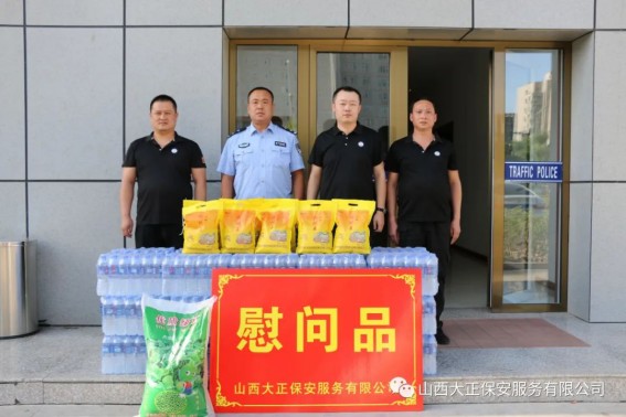 在慰問(wèn)中,山西大正保安服務(wù)有限公司守押偏關(guān)中隊(duì)帶著對(duì)交通民警的敬意,為交警們送來(lái)防暑用品,表達(dá)了公司對(duì)交通民警奉獻(xiàn)精神的感謝。并希望這次慰問(wèn)活動(dòng)給大家?guī)?lái)一絲清涼。交警的工作十分辛苦,尤其是在夏季頂著炎炎烈日,為維護(hù)道路交通秩序做出了突出貢獻(xiàn),為廣大群眾出行提供安全暢通的環(huán)境。