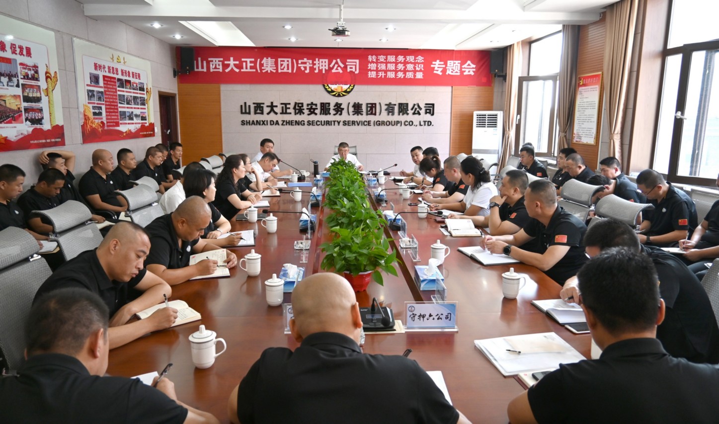 7月21日上午,山西大正(集團)守押公司召開轉(zhuǎn)變服務(wù)觀念、增強服務(wù)意識、提升服務(wù)質(zhì)量專題會議。集團公司黨委書記、董事長張躍生出席并做重要講話。黨委副書記、總經(jīng)理趙培宏主持會議。黨委委員、副總經(jīng)理王明生,總經(jīng)理助理、辦公室主任宋林兔,總經(jīng)理助理、守押公司副總經(jīng)理寇星云、守押公司其他領(lǐng)導(dǎo)及集團公司一室七中心負責(zé)人,基層分公司、中隊負責(zé)人四十余人參加。