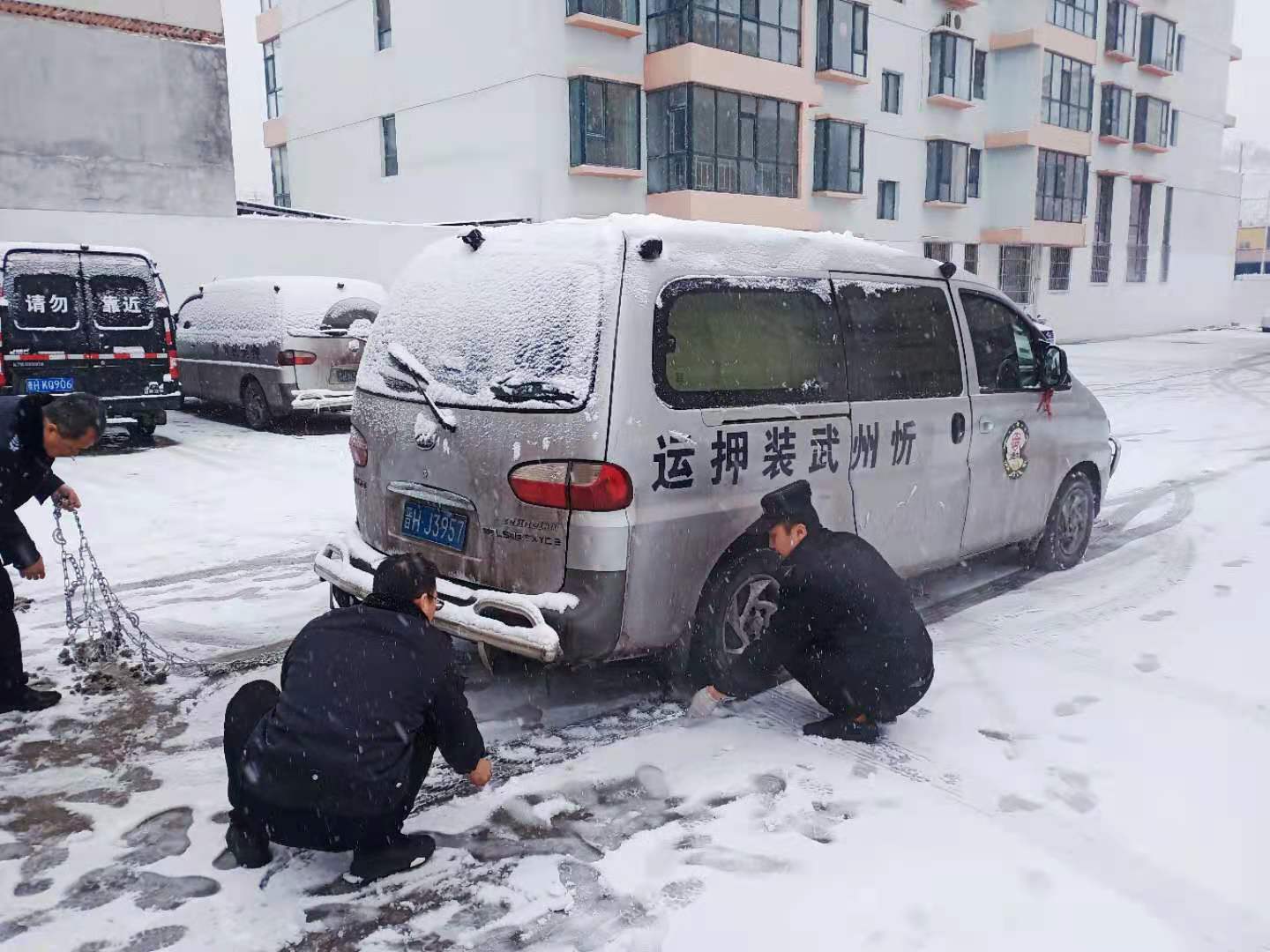 由于降雪天氣給運(yùn)鈔車安全行駛導(dǎo)致安全隱患,中隊(duì)每日關(guān)注天氣情況有效應(yīng)對,及時安排各車組提前做好出車前車輛安全檢查以及安裝防滑鏈,同時囑咐要注意車速,確保行車安全。安全無小事,每一次往返任務(wù)都牽動著公司領(lǐng)導(dǎo)的心。由于天氣惡劣,車隊(duì)出發(fā)后,中隊(duì)管理人員一步不離堅(jiān)守在崗位上,和各車組隨時保持著聯(lián)系,有時隊(duì)長、副隊(duì)長親自跟車,以便及時了解各車組途中的實(shí)際情況。