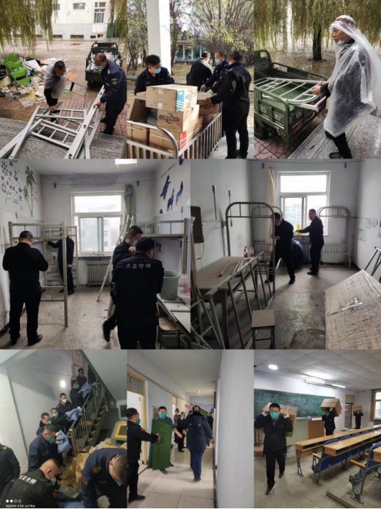 疫情就是命令,防控就是責任。隊員們第一時間和集團各部門領(lǐng)導、職工進入忻州師院東校區(qū)隔離點,開始了緊張有序的后勤工作,組裝高低床,冒雨搬運床板,往樓上運送物資,以時不我待、爭分奪秒的緊迫感,每天工作約14個小時,累了就在原地物資箱子上坐著休息一會兒,經(jīng)過和大正同仁幾天的連續(xù)奮戰(zhàn),14日,師院東區(qū)隔離房間配套設(shè)施已全部完善,下午5點隔離人員陸續(xù)入住,隔離區(qū)開始封閉管理。