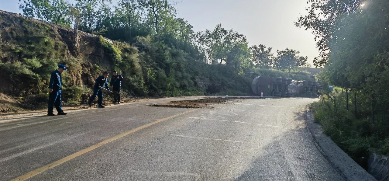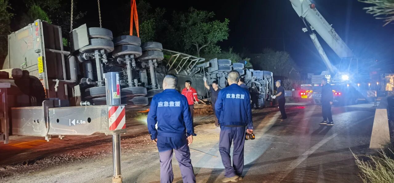 2025年9月6日,一輛裝載液化氣的重型半掛牽引車在土崖塔鄉(xiāng)寨上村附近路段發(fā)生側(cè)翻,現(xiàn)場(chǎng)情況緊急。縣應(yīng)急管理局救援大隊(duì)、縣公安局、縣消防救援大隊(duì)、保德守押中隊(duì)?wèi)?yīng)急救援隊(duì)等多部門迅速響應(yīng),第一時(shí)間趕赴現(xiàn)場(chǎng)協(xié)同開展應(yīng)急救援工作,全力守護(hù)群眾生命財(cái)產(chǎn)安全。經(jīng)現(xiàn)場(chǎng)查看,氣罐車罐體出現(xiàn)輕微變形,并伴隨機(jī)油等混合液體流出,液化氣具有易燃易爆特性,事故地點(diǎn)臨近村落,嚴(yán)重威脅了人民群眾生命財(cái)產(chǎn)安全和過境車輛安全交通安全。