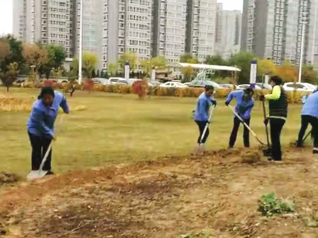10月下旬始,趁著天氣還比較暖和,以常態(tài)保潔為主,做好日常工作,同時進(jìn)行修剪草坪、整理樹坑、清理花壇、處理盆栽殘花等,截至目前,共計打理草坪8700平方米,整理樹坑70個,清理花壇三處,處理殘花7000小盆。另外,冬季供暖屬于重頭戲,項目部組織員工仔細(xì)排查管道跑水、漏水現(xiàn)象,保證供暖注水的正常,保障了服務(wù)單位的供暖質(zhì)量。